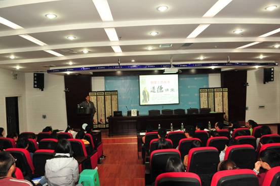 11月12日晚,我校道德讲堂第三十三期讲座在大连路校区图书馆多功能厅如期举行,此次我校邀请到中国作家协会会员、贵州省首批红色旅游专家、遵义市长征学学会常务副会长兼秘书长、遵义市原旅游局局长、著名作家黄先荣作了题为《担架上的故事》的专题讲座。讲座由学校党委宣传部部长贺梦依主持,宣传部、基础医学院、人文社科学院及其他院系的老师、同学到场聆听。