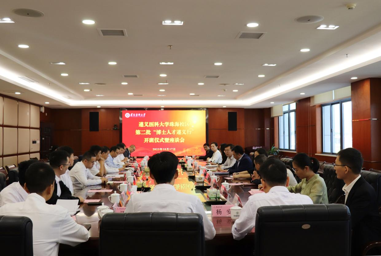 10月17日上午,珠海校区“学习党的二十大”2023年秋季“博士人才遵义行”开班式暨高层次人才座谈会在新蒲校区行政楼五楼2号会议室举行。学校党委委员、组织部长、统战部长郭宇亮,校区党委副书记周晓东、李荣远出席会议。相关职能部门负责人,珠海校区、校本部高层次人才代表参会。