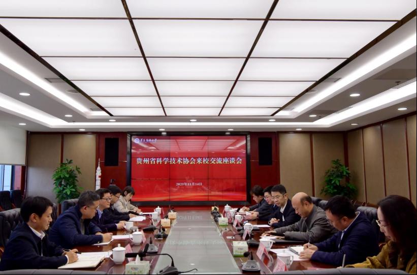 11月14日下午,贵州省科学技术协会党组书记、副主席朱洪波一行来校调研交流,并在新蒲校区行政楼六楼3号会议室举行座谈会。学校党委书记刘文致辞,相关职能部门负责人参加。会议由学校党委常委、副校长袁泽利主持。