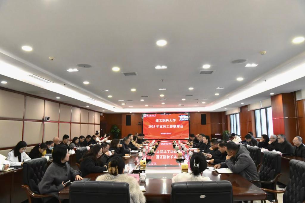 12月16日下午,我校在新蒲校区五楼二号会议室召开2025年宣传工作联席会。学校党委副书记郭宇亮讲话,党委常委、宣传部部长、统战部部长杨清玉主持会议。各二级学院、职能部门、附属医院相关负责人参会,珠海校区及第五附属(珠海)医院线上同步参会。