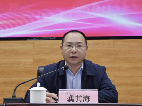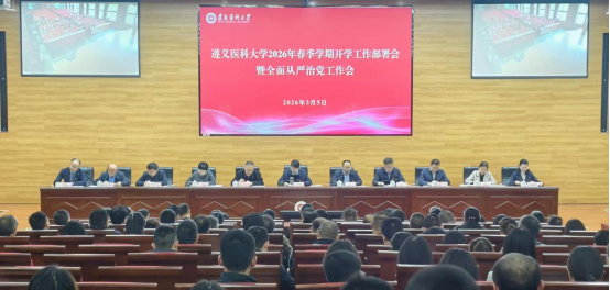 3月5日,学校2026年春季学期工作部署会暨全面从严治党工作会在新蒲校区人文楼学术报告厅召开,学校党政领导,各职能部门、二级学院相关人员参会,珠海校区、第五附属(珠海)医院同步视频参会。学校党委书记刘文,党委副书记、校长龚其海讲话,全面总结2025年学校各项工作成效,系统部署2026年重点工作任务。学校党委常委、纪委书记、省监委驻遵义医科大学监察专员王明述通报2025年度学校党风廉政建设和反腐败工作情况并部署2026年工作。会议由党委副书记郭宇亮主持。