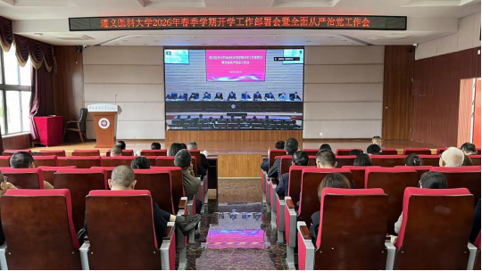 会议要求,学校要紧紧围绕2026年全国教育工作会议和全省教育工作会议部署要求,聚焦八大重点工作发力。坚持党建引领纵深推进全面从严治党,抓好基层党建与干部队伍建设;全力推进“增博扩硕”,深化高水平院校学科帮扶;以人工智能赋能教育教学,推进教学评估整改与专业认证;强化有组织的科研,提升科研立项与成果转化效率;加大人才引育力度,推进薪酬制度改革试点;高标准编制执行“十五五”规划,加快重大项目建设与申报;扩大高水平开放办学,深化国内外合作;推进附属医院建设,提升医疗服务与医教研协同水平。全校师生要拿出“一马当先”的气魄、“万马奔腾”的气势,一步一个脚印把学校第二次党代会擘画的蓝图变为现实,奋力谱写遵义医科大学高质量发展新篇章。(图文:龚喜、姚固秋,审核|一审:肖永霞,二审:刘伟,三审:杨清玉)