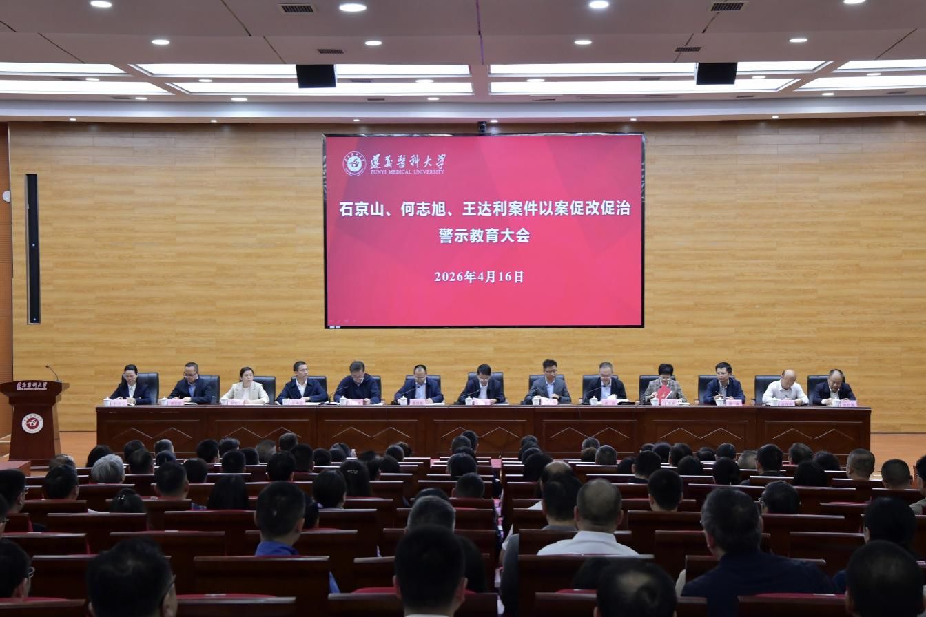 根据以案促改促治工作要求,4月16日,学校在新蒲校区人文楼学术报告厅召开以案促改促治警示教育大会。在遵学校领导班子成员,各二级学院、附属医院和第二附属医院副处级以上干部,机关党委、后勤管理处党总支、离退休工作处党总支副科级以上干部参加。省纪委省监委第六监督检查室主任王运行到场指导。学校党委书记刘文主持会议。