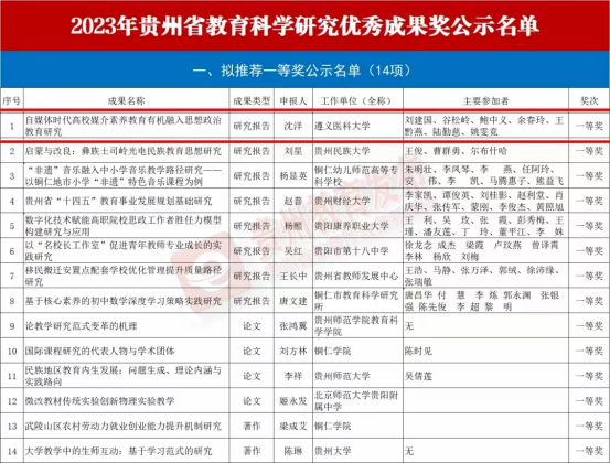 沈洋副教授荣获2023年贵州省教育科学研究成果一等奖