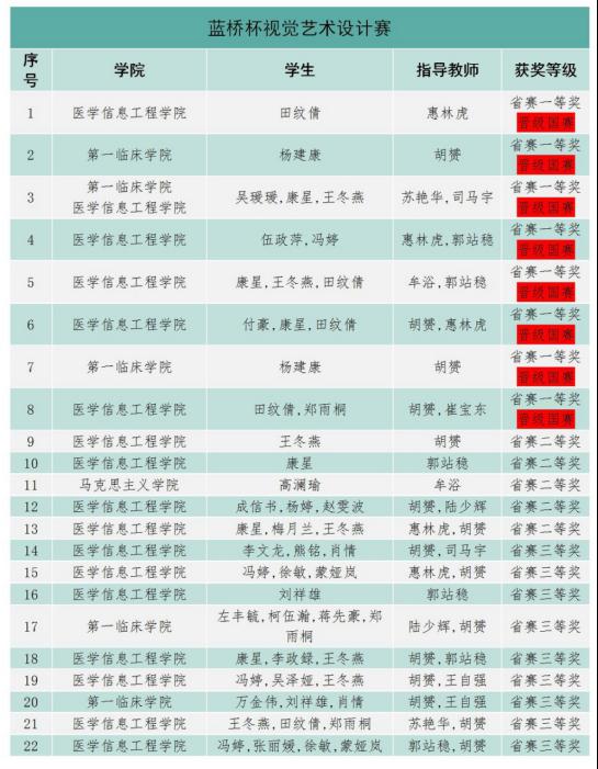 未来,学校将持续以新医科建设为引领,将学科竞赛作为深化医学教育改革的重要抓手,进一步深化创新创业教育改革,提高学科竞赛能力和水平,推动创新创业教育与思想政治教育、专业教育的深度融合。同时,我校还将全面开展课程体系、教学方法、师资队伍和实践教学基地建设等多方面的改革,为培养更多优秀医学人才贡献力量。(审核:一审张继东、二审上官腾飞、三审杨清玉,撰稿:赵智权)