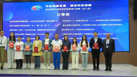 9月26日,贵州省第九届科学实验展演汇演赛(成人组)在贵州科学城科技创新园落下帷幕,此次赛事汇聚了全省大中小学、各类科研单位等57支优秀代表队。我校季松岭团队与姚秋丽团队分别获一等奖和三等奖,学校同时获评“优秀组织单位”,我校是省内高校中唯一获批一等奖的单位。