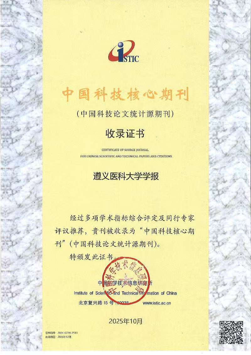 2025年中国科技论文统计结果于10月30日在北京国际会议中心发布。《遵义医科大学学报》凭借过硬的学术品质与行业影响力,再次成功入选“中国科技核心期刊”(中国科技论文统计源期刊)。至此,学报已实现连续十年蝉联该荣誉,标志着其在学术出版领域的持续深耕与卓越成就。