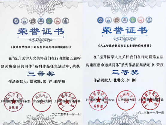 11月1日上午,由《中国医学伦理学》杂志等单位主办“提升医学人文关怀我们在行动暨第五届构建医患命运共同体”学术研讨会在广西南宁举办。来自全国的医学人文专家、医务人员、患者代表、医学生代表、医院管理者、媒体代表、社会人士等共计500余人参会,共商共研医学人文关怀。我校马克思主义学院作为协办单位之一,积极参加大会前期筹备工作和作品征集活动,并斩获多项荣誉。