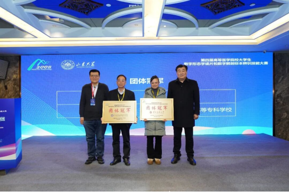 近日,由全国基础医学形态学实验室主任联席会主办,山东大学齐鲁医学院承办的“第四届高等医学院校大学生数字形态学读片和数字解剖标本辨识技能大赛”现场总决赛圆满落幕。我校学子在本届大赛中荣获最高奖项——本科组团体冠军,学校获“优秀组织奖”。